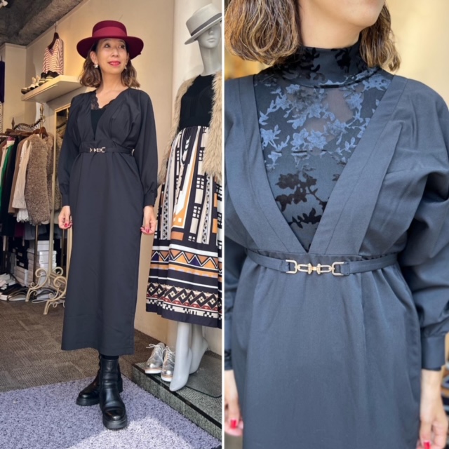 Vネックワンピース💕¥8900+tax Vネックベルト付きワンピース ¥8900+tax😍 インナーと合わせてコーデを遊べる深Vネックワンピース。 共布にゴールドバックルのベルトがおしゃれなポイント。 比較的タイトなシルエットですが、ストレッチがあって楽ちんな着心地。 ワンピース サイズ38 素材 レーヨン65 レーヨン30 スパンデックス5 着丈127 シアーフロッキージャガードトップス ¥7900+tax サイズ 38 ポリエステル100 手洗い可 コメントは受け付けていません。