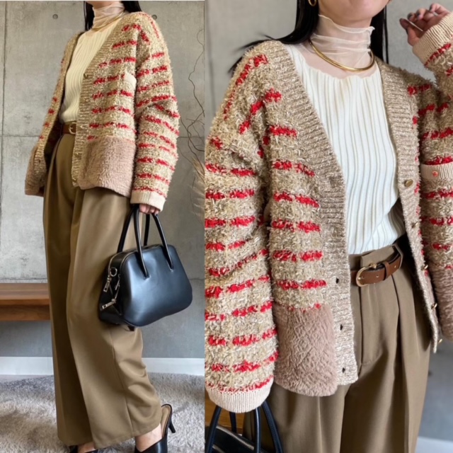 ミックスツィードのニットカーディガン 💕¥17000+tax めちゃキュートなミックスツィード素材のニットカーディガン 💕 ふわっと軽い大人カーディガンは、ROSIEらしいミックス糸がめちゃ可愛い💕 金ボタンで高みえ😍 手洗い可能で毛玉になりにくいのも、おすすめのポイント💕 着丈55 フリーサイズ 素材コットン32 アクリル28 ナイロン20 ポリエステル18 ポリウレタン2 コメントは受け付けていません。