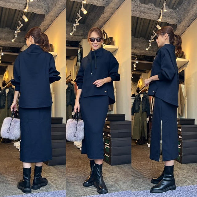 トップス¥5,940 スカート¥5,390 ✨ 着るだけで素敵コーデが完成するセットアップ🫶🏻💕 それぞれ単体でも着回ししやすいアイテムです。 スカートはファスナーでスリットを調節出来ます✨ ネイビー×ゴールド金具の組み合わせが上品です💕 トップス¥5,940 スカート¥5,390 コメントは受け付けていません。