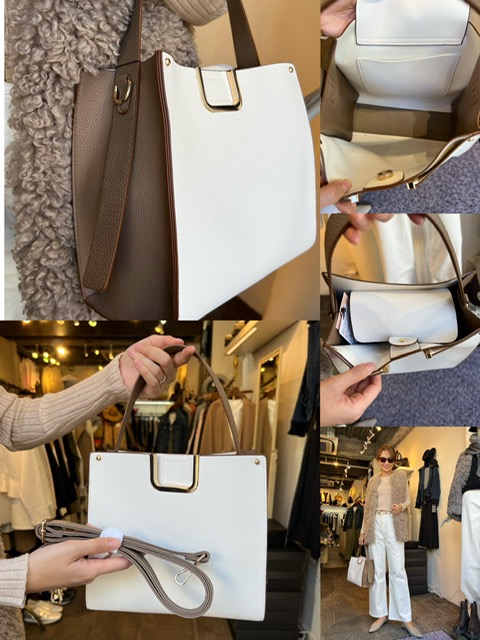 バッグ¥7,700✨ ホワイト×グレージュのカラーがとても上品なバッグが入荷しております✨ 仕切りがあって使いやすく、蓋もついているので中のものが見えません👌🏼 嬉しいショルダー付き❣️ ¥7,700には見えないデザインとクオリティです✨ どんなお洋服にも合わせやすくおすすめなので、ぜひご覧ください💕 バッグ¥7,700 2023年10月16日