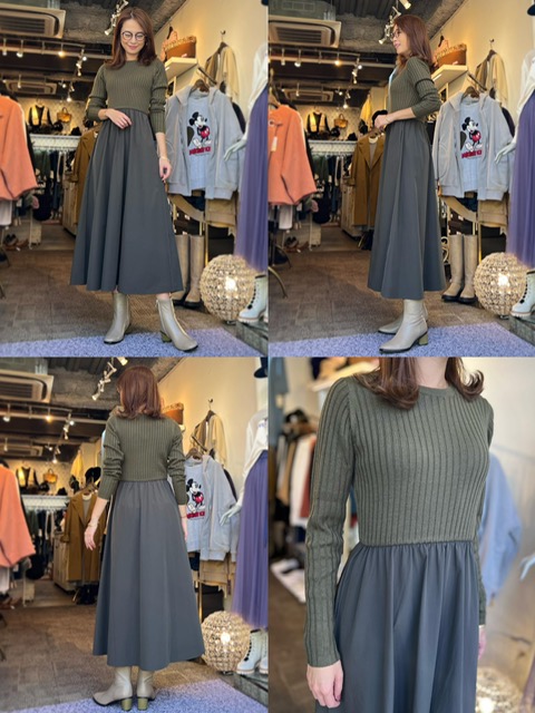 ドッキングワンピース¥18,700✨ 今年も大人気のドッキングワンピース✨✨ リブニットとファブリッグの異素材ワンピです💕 ニットは柔らかく、スカートはAラインに広がるデザインなので着心地も抜群。 着るだけで素敵コーデが完成します😉 ご自宅で手洗いしていただけます🫶🏻 ドッキングワンピース¥18,700 コメントは受け付けていません。