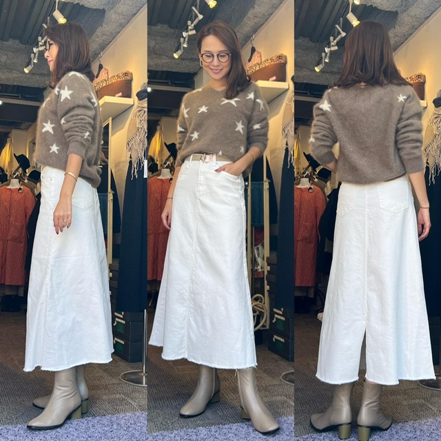 星ニット¥29,700✨ 毎年大人気のモヘアニット☺️💕 毛100%でとても暖かく超軽量です✨ 遊び心のあるスターデザインがポイント⭐️ ボトムスも選ばない優秀ニットです😉 星ニット¥29,700 スカート¥14,080 コメントは受け付けていません。