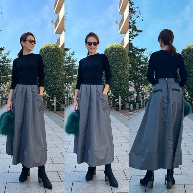 ミリタリー風スカート¥17,600 少し光沢のある素材で、ミリタリーデザインを上品に仕上げたスカート✨ サイドポケットがアクセントになっています。 バックファスナーとバックポケットのラインで後ろ姿もすっきりです☺️ ニット¥7,590 ミリタリー風スカート¥17,600 コメントは受け付けていません。