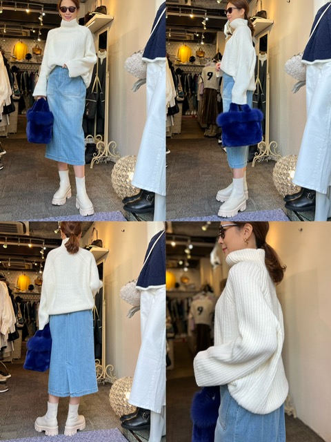 ニット¥11,000✨ アクリル✖️ナイロンの混紡で軽くてふんわりと暖かいニット💕 スッキリしたネックラインや、前後差のある着丈で着痩せ効果もあり✨カラバリ豊富なのでぜひチェックしてください☺️ イエロー、アップルグリーン、ホワイト、ブルー、パープル、新色のレッドがございます✨ フリーサイズ 着丈60/63 身幅116 ニット¥11,000 スカート¥14,080 コメントは受け付けていません。