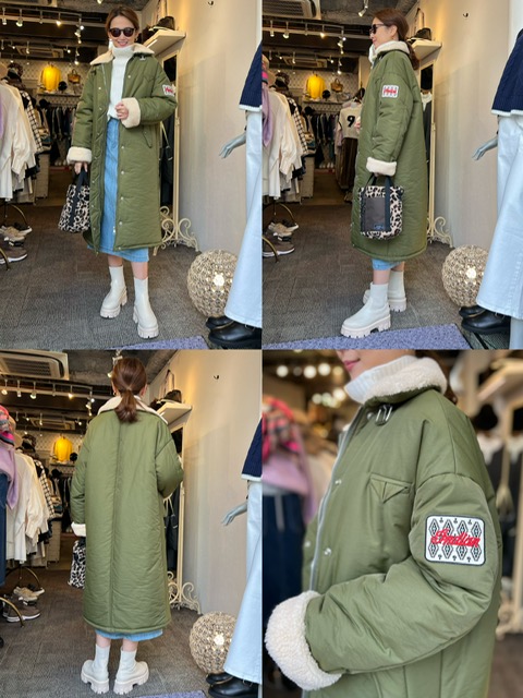 腕のワッペンがポイントのボアコート💕 カジュアルスタイルにぴったりです✨