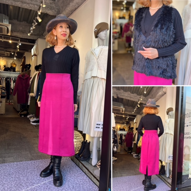 フューシャピンク🩷のタイトスカート¥5900+tax ストレッチポンチ素材のとても履きやすいタイトスカートとシャギーニットベストでコーディネートしてみました💕 今季、ベストのコーデはマスト💕なアイテム。 コートのインに着て、冬もヌクヌクと暖かく過ごせますすよー シャギーだから毛玉の心配も無し⭐️⭐️⭐️ 手洗い可💕 インナーニット ¥7900+tax シャギーニットベスト¥6900+tax スカート ¥5900+tax コメントは受け付けていません。