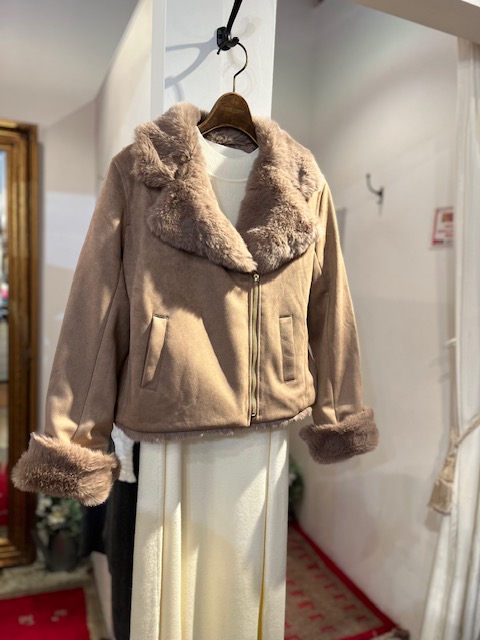 表と裏でゼブラ柄とラメ糸入りのヒョウ柄の織生地を組み合わせがお洒落。