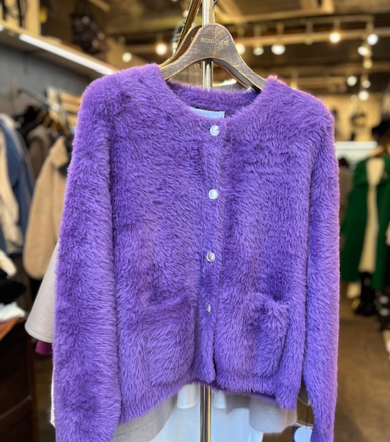 シャギーニットカーディガン 💕¥15000+tax 少しだけラメが入ったシャギーニットカーディガン 💕 マットゴールドのボタンもポイントになってキラキラ感⤴️ お写真の綺麗なパープルはかなりレアなカラー🩷 他に、アイボリー、グレー、マスタード、ブルー、ネイビーがございます。 サイズ38 コメントは受け付けていません。