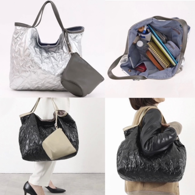 肩にかけてざっくりと持て、A4サイズも楽々収納できる大容量。