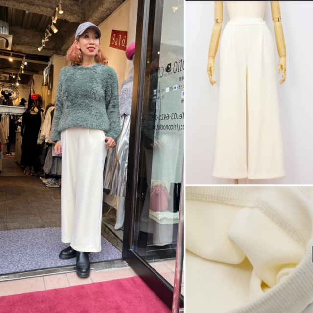 しなやかさのあるポリ素材で裏起毛タイプのワイドパンツ再入荷しました。