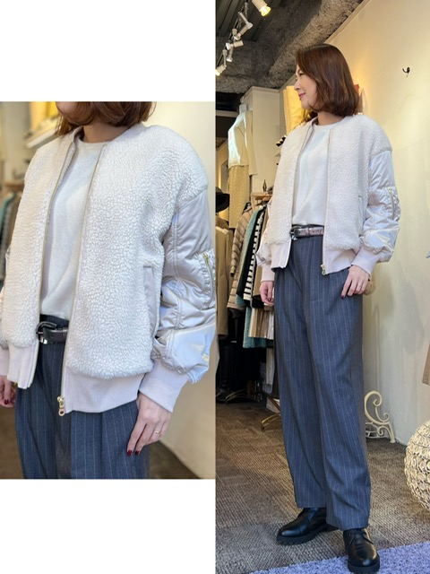ボア切り替えMA-1ブルゾン ¥13860 +tax✨ とっても軽量で着やすくてお手入れも楽ちんなMA-1タイプのブルゾンは、パンツスタイルにも、チュールのスカートやフェミニンなワンピースにも合わせやすい逸品です✨ ベージュ、ブラック、カーキ✖️アイボリーの3カラーです❣️ ボア切り替えMA-1ブルゾン ¥13860+tax コメントは受け付けていません。