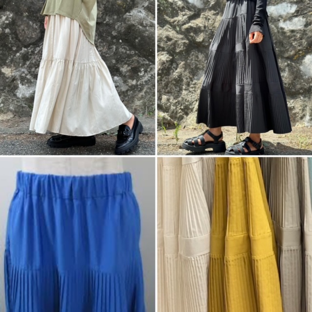 3段プリーツスカート💕¥15400税込 控えめな光沢と動きに合わせて揺れるプリーツが女性らしいティアードスカート。トレンド感がありながらも長くご愛用していただけるデザインがおすすめのポイント。 段になったプリーツは裾に向かって面積が広くなるように切り替えられており、ウエストは細く腰回りもすっきり見せてくれる💕 ウエストは総ゴムで、着心地はもちろん着脱も楽ちんです。 □着丈:約84cm ウエスト:約62cm~(総ゴム仕様) □QUALITY ポリエステル 100% 裏地 ポリエステル 100% コメントは受け付けていません。