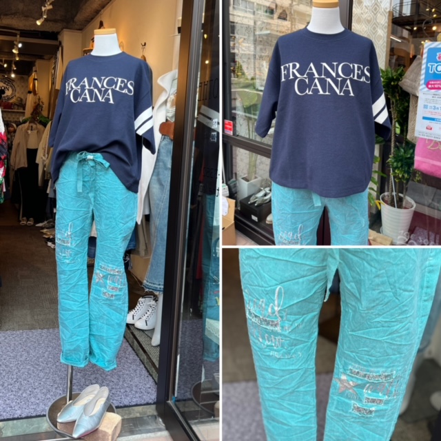 ロゴトップス✖️カラーパンツ💕 イタリアインポート🇮🇹のデザインパンツにネイビーのライン入りデザイントップスを合わせたコーデ💕 サラッとした生地が気持ち良いトップスは、二の腕スッキリ見せてくれる💕 大人女子には嬉しいアイテム。 パンツは抜群のストレッチで着心地良しーーーーっ フリーサイズとなっておりますので、XS〜Lの方にお履きいただけます トップス ¥7590 パンツ ¥11000 全て税込 コメントは受け付けていません。