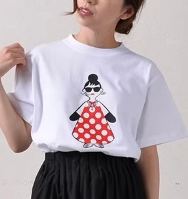エマちゃんTシャツ💕本日再入荷します オードリーヘプバーンをモチーフにしたエマちゃんTシャツ💕 イヤリングのところにビーズが縫い付けられてて、めちゃキュートなテイシャツです。 コットン100でめちゃ着心地良し⭐️⭐️⭐️ 白、黒の2カラー M.Lの2サイズ展開となっております。 数に限りがございますのでお早めにチェックくださいませ。 エマちゃんTシャツ ¥8690 税込 M 着丈65 バスト98 L 着丈69 バスト104 コメントは受け付けていません。