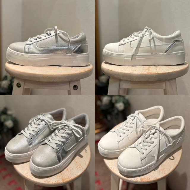 超軽量スニーカー💕 夏コーデ必須アイテム✨ ゴム紐なので履きやすさ抜群です✨ 【素材】 甲材 合成皮革 牛革 底材 合成底 【サイズ】 35(22.5)、36(23.0)、37(23.5)、38(24.0)、39(24.5) 【カラー】 ホワイト、シルバー スニーカー ¥10,000+tax コメントは受け付けていません。