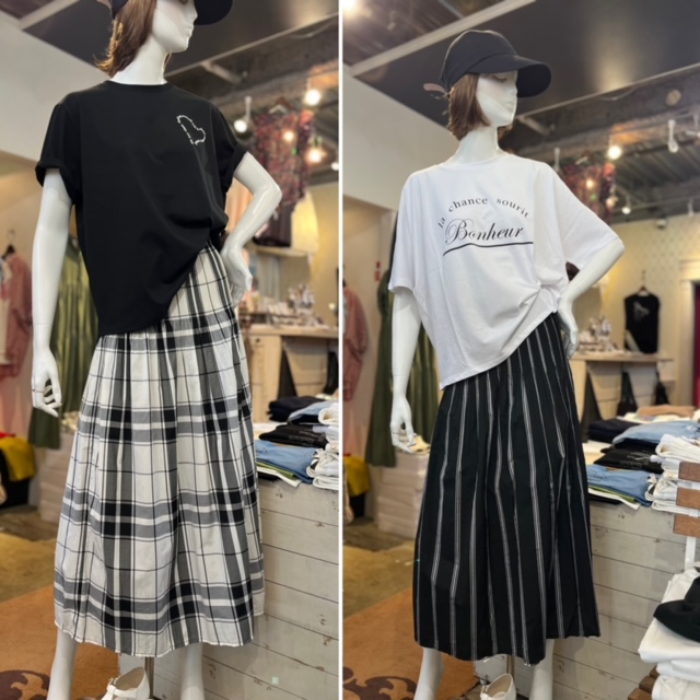 リバーシブルスカート💕¥8690💕 チェックとストライプのリバーシブルでガラッと変わった表情のスカートが入荷しました。 お写真のブラック系とお色違いでブルー系の2カラー🩷 超破格の今週の特価品です お見逃しなくーー フリーサイズ ウエスト 66〜86 着丈 90cm 2024年5月26日