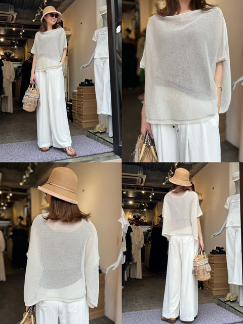 メッシュニット¥10,450 パンツ ¥17,380✨ 涼しげなメッシュニットとワイドパンツでリラクシーコーデ👒 ニットは程よい透け感が上品です✨ メッシュニット¥10,450 パンツ¥17,380 バッグ¥6,580 コメントは受け付けていません。