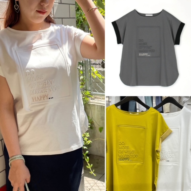エンボス加工に刺繍+ラインストーンを付けた、大人可愛いプリントTEE💕