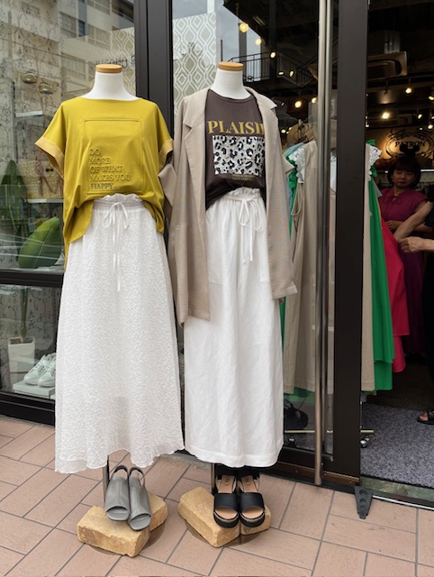 本日のディスプレイ💕 6月の晴れ間、いかがお過ごしですか? リコノには素敵な新作アイテムが沢山入荷致しました💕 本日も夜19時迄営業しております 皆様のご来店をお待ちしております😃🙌 右 Tシャツ ¥4290 スカート ¥16280 左 Tシャツ ¥9900 パンツ ¥17600 メッシュジャケット ¥17600 全て税込 コメントは受け付けていません。