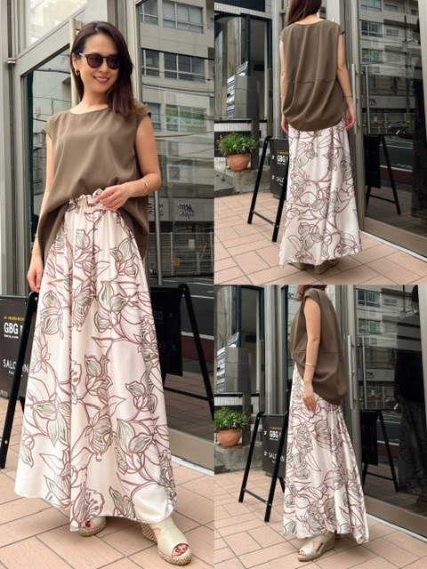 スカート¥16,500✨ 光沢のある質感と大柄のデザインがエレガントなインポートスカート☺️✨ しっかり長めの丈なので、高身長さんにもおすすめ❣️ ウエストは総ゴムです✨ 他には無いデザインなので、気になる方はぜひお問い合わせください💕 トップス¥15,180 スカート¥16,500 コメントは受け付けていません。