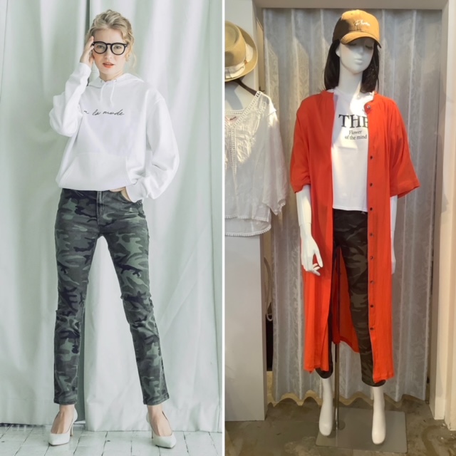 快適💕迷彩パンツのコーデ💕 ウェストや生地全体がストレッチ生地となっていて、驚きの履きやすさを実現したインディマークの迷彩パンツを秋に向けて投入💕 Tシャツはもちろん、フェミニンなブラウストップスともコーデしやすいです。 まだまだ暑い猛暑の日々は、陽射し避けにもなるお得なオレンジカラーのシャツワンピースで、爽やかコーデに。 シャツワンピース ¥14300 30%オフ💕 →¥10010 素材 コットン100% 迷彩パンツ ¥14080 XS.S.M.L.XL ◆素材:綿97%、ポリウレタン3% コメントは受け付けていません。