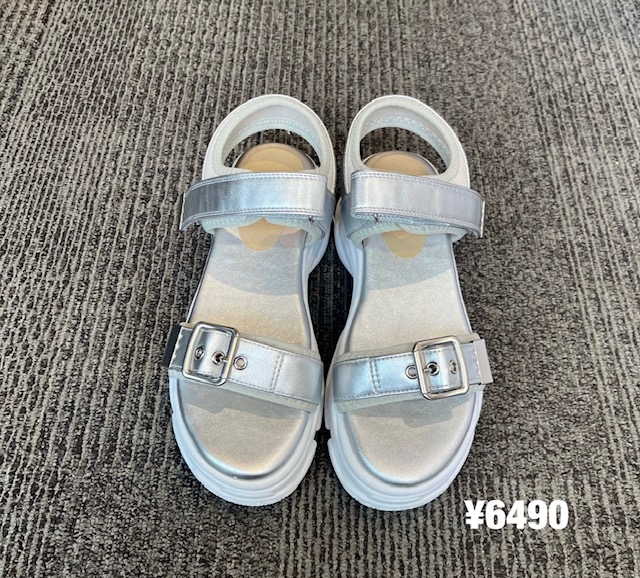 厚底シルバーのスポサン💕¥6490 フカフカのソールと、アッパーの素材でめちゃくちゃ快適なスポサン💕 Lから L Lサイズのみラスト一足です💕 ベルトで調整が出来ますので、自分の足にフィットさせる事ができるから、とにかく快適⭐️⭐️⭐️ 2足買いの方、続出のサンダルです❗️ まだまだ続く夏のコーデに大活躍の一足。 お見逃し無くーーー コメントは受け付けていません。