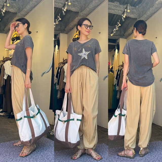 パンツ¥12,100→20%オフ✨ ビンテージ加工されたリラックス感のあるTシャツに、パラシュートパンツのコーデ💕 さらさらな質感とウエストゴムで、ストレスフリーな一枚❣️シルエットはゆったり今っぽくて、穿くだけでお洒落に見える優秀パンツです✨ 今ならお買得ですよー💕 パンツ¥12,100→20%オフ バッグ¥13,200 コメントは受け付けていません。