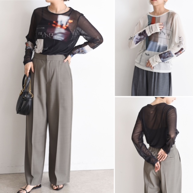 アーティスティックな転写プリントが素敵なシアーメッシュのトップスが入荷しました💕