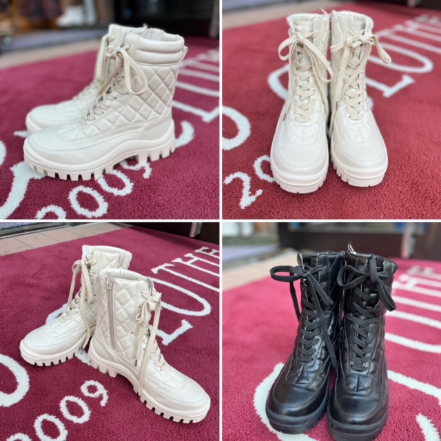 レースアップブーツ💕 ¥14850 めちゃ履きやすくて軽量のエコレザーブーツが到着しております。 内側のファフナーで着脱も楽ちん💕 絶妙な高さで、足を長く見せてくれます💕 小さいおサイズと、白ブーツは、ほぼメーカー完売となっておりますので、お早めにチェックくださいね。 22.5cm〜24.5cm コメントは受け付けていません。