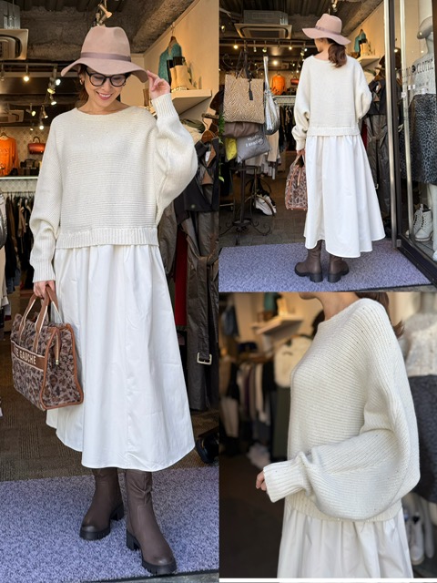 ニットのドッキングワンピースは1枚でスタイリングされているようなデザイン✨