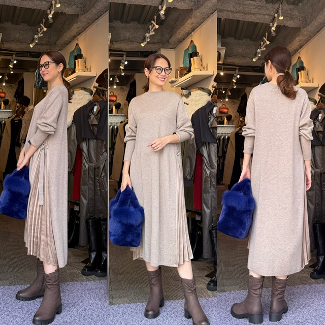 サイドプリーツワンピース¥17,900+TAX✨ サイドのプリーツがポイントのニットワンピース💕 パンツやレギンスを合わせてチュニックとして着ていただくのもおすすめです☺️ 上品で動きのあるデザインが👌🏼✨ サイドプリーツワンピース¥17,900+TAX コメントは受け付けていません。