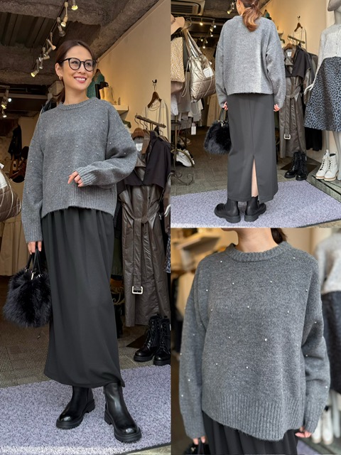 ビジューニット¥9,790✨ 暖かみのある程よく地厚なニット🩶 ビジューが施されていて、大人かわいい一枚です✨✨ アクリル74% ポリエステル22% ポリウレタン4% ビジューニット¥9,790 コメントは受け付けていません。