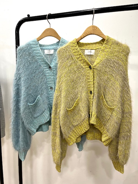 ミックスシャギーニットカーディガン ¥14000+tax💕 今年も残りわずかとなりましたねー 1ヶ月少しで新年となる為、春らしい綺麗なカラーのカーディガンを投入しませんか💕 何年経っても毛玉にならないシャギーニットカーディガンなら、ずっと綺麗💕ずっとお出かけ用として大活躍です ロージーならではのお洒落なカラーで、一足お先に春コーデをお楽しみください。 カラー サックスブルー、イエロー ハンドウォッシャブル💕 素材 アクリル69ナイロン31 コメントは受け付けていません。