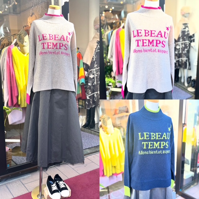 カシミヤ入りロゴニット💕 1枚でコーデが決まるニット✨ 薄手だけど暖かいです✨ 【素材】 毛90%、カシミヤ10% 【カラー】 ベージュ×ピンク、ネイビー×グリーン 【サイズ】 フリー ニット¥16,900+tax 2024年12月9日