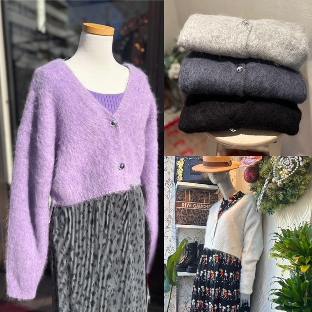 アルパカショート丈カーディガン💕 軽くて暖かいアルパカ素材✨ 今年らしいショート丈で冬のコーディネートを楽しめます✨ 【素材】 アルパカ79%、ナイロン19%、ポリウレタン2% 【カラー】 パープル、オフホワイト、ライドグレー、グレー、ブラック 【サイズ】 フリー カーディガン ¥21,000+tax コメントは受け付けていません。