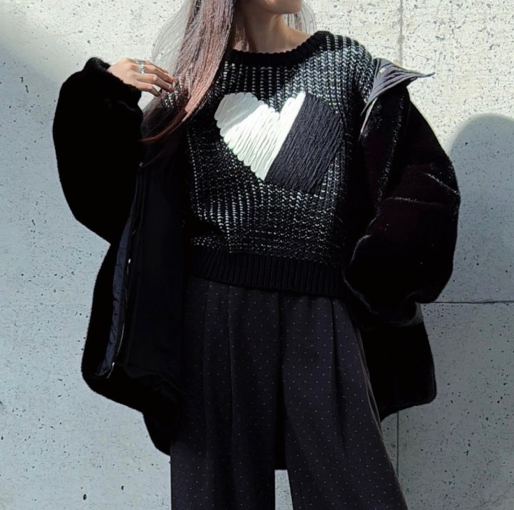 ハートニット💕¥15000+tax めちゃキュートな配色のハートニット💕 いよいよお店に到着しました💕ウェストラインで着るショート丈が今っぽい。 アクリル素材なので、ノンチク💕ですよぉ〜 コメントは受け付けていません。