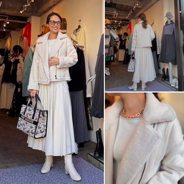 本日初売りstartです🎉🎉🎉 あけましておめでとうございます💕 本日10:30より初売りをさせて頂きます。 ワクワクの商品がめちゃお得に並びます🎉🎉🎉 皆様のご来店をお待ちしております🙌😃 ボアのライダースコート ¥19900+tax 30%オフ🎉🎉🎉 ¥13930+tax💕 ゆったり目のお袖なので、比較的ボリュームニットも着ていただけます⭐️ 白とライトグレー、ベージュがございます 各一点のみ コメントは受け付けていません。