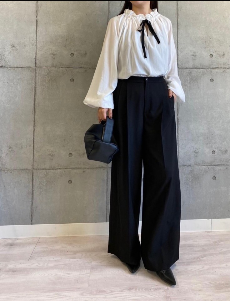 リボン付きブラウス¥14000+tax 襟元のフリルと黒のリボンが素敵なブラウスは、今年トレンドのネックラインのフリルを引き締めて、いつもの黒のパンツもブラッシュアップしますよ💕😍 ありそうで無い、甘すぎないデザインがオススメのポイントです シワになりにくい上質なコットン素材でノーアイロン💕ストレスフリー⭐️⭐️⭐️ フリーサイズ 素材 コットン100% コメントは受け付けていません。