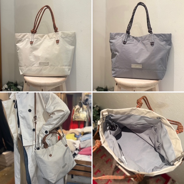 ナイロン2WAYバッグ💕 A4サイズも入り、バッグ口は大きく開き、ボトルホルダーや内ポケットが備わっており使い勝手抜群✨ 取り外し可能なロングショルダーが付いた2WAY仕様なので、コーデや気分によって使い分ることができます✨ 【カラー】 ライトベージュ、グレー バッグ ¥4,900+tax 2025年3月11日