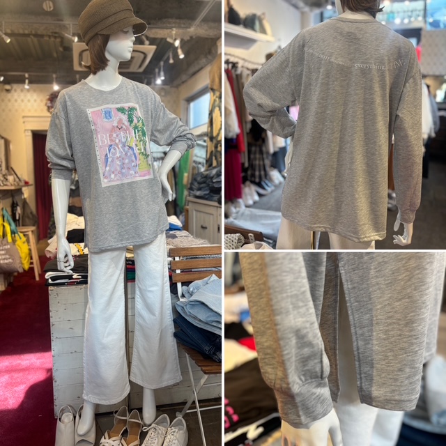 アートプリント シアースラブロンTシャツ💕 テンセル混の透け感のあるサラッとしたおしゃれ素材に載せた綺麗目なロンTです✨ カジュアル過ぎない雰囲気と滑りよく柔らかな着心地です✨ ロンTは年間通じて着用できる優れものアイテム✨ 1枚あるとスタイリングに華を添えてくれます✨ 【素材】 ポリエステル36%、綿32%、再生繊維(セルロース)32% 【カラー】 グレー 【サイズ】 フリー Tシャツ ¥6,900+tax 2025年4月5日