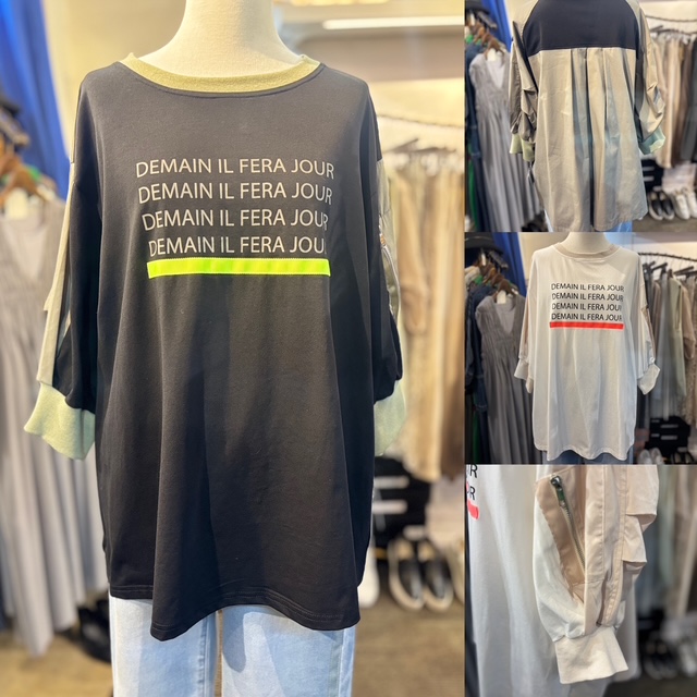 ミリタリースリーブTシャツ💕 【素材】 本体 綿95%、ポリウレタン5% 別布 綿65%、ナイロン32%、ポリウレタン3% 【カラー】 ブラック×カーキ ホワイト×ベージュ 【サイズ】 38 Tシャツ ¥13,000+tax 2025年4月13日