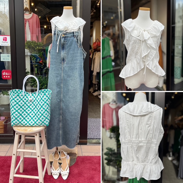 白ブラウスとデニムワンピース💕 めちゃ人気のデニムのサロペットスカートに、白のフリルデニムのサロペットワンピースをコーデしてみました💕 とにかく使えるデニムワンピースは 追加入荷もいよいよ完売となりそうですー 4月の限定クーポン ¥3000でお得にお買い物されて下さいねーー 朝は10:30より夜は19:00迄営業しております。 ブラウス ¥11000 ワンピース ¥17000 バック ¥4200 全て外税 2025年4月24日