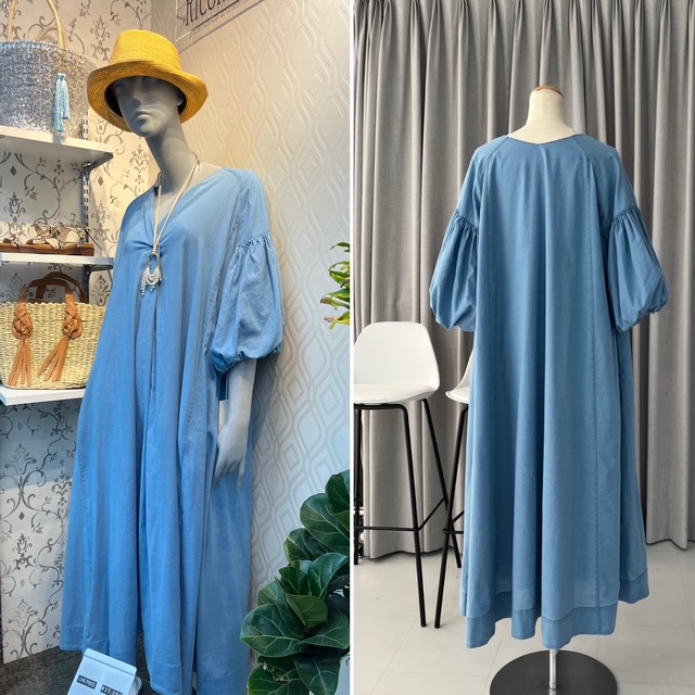 ayane コットンのワンピース💕 スッキリしたVネックとふんわりしたお袖がキュートな夏のワンピースが入荷致しました💕😃 めちゃめちゃ涼しくて、汗をかいても速乾です。また、コットンの裏地付きで、透け感無し🎉なので、一枚でお使いいただける優れモノ⭐️⭐️⭐️ トレンドのペールプルーで旬のコーデをお楽しみくださいね。 3000円オフのcouponは6/30までお使いいただけます😆🙌 ワンピース ¥25080 税込 素材 コットン100% フリーサイズ 裏地付き 2025年6月12日