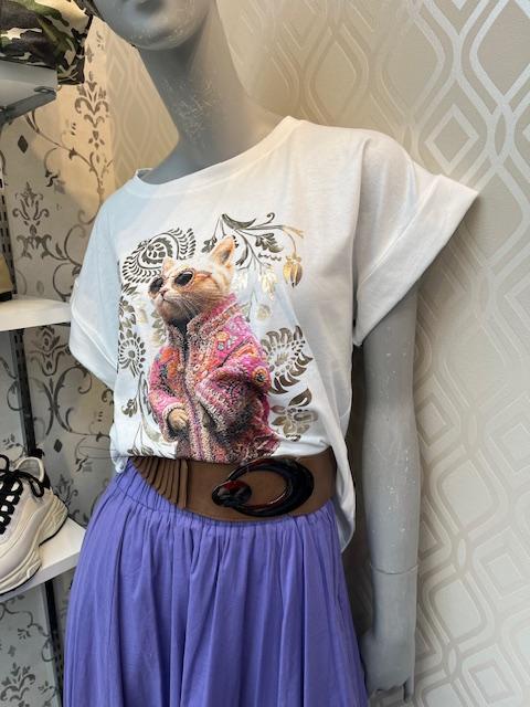 イタリア🇮🇹インポートTシャツ💕 イタリアからキュートな猫ちゃんプリントのテイシャツ が入荷しました💕😃 周りのシャンパンゴールドの飾りで、高見え🎉🎉🎉 二の腕細見えの折り返し仕様ですーー 一点のみ‼️ 他にもインポートの可愛いテイシャツ がいろいろ入荷しております😃🙌 2025年6月12日