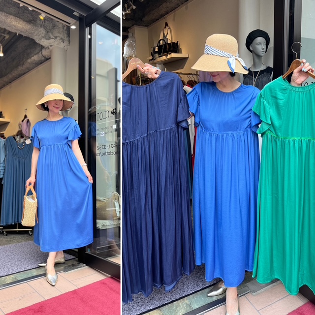 シフォンワンピース💕¥13800+tax ヴィンテージシフォン生地を使った上質なワンピースが到着しました💕 サラッと一枚で着られて、透け感無し⭐️⭐️⭐️ 軽量でシワになりにくいからご旅行にもお薦めです。 左から、ネイビー、ロイヤルブルー、グリーンの3カラー 素材 ポリエステル100% フリーサイズ ウォッシャブル💕 ハット ¥7200+tax 2025年6月13日