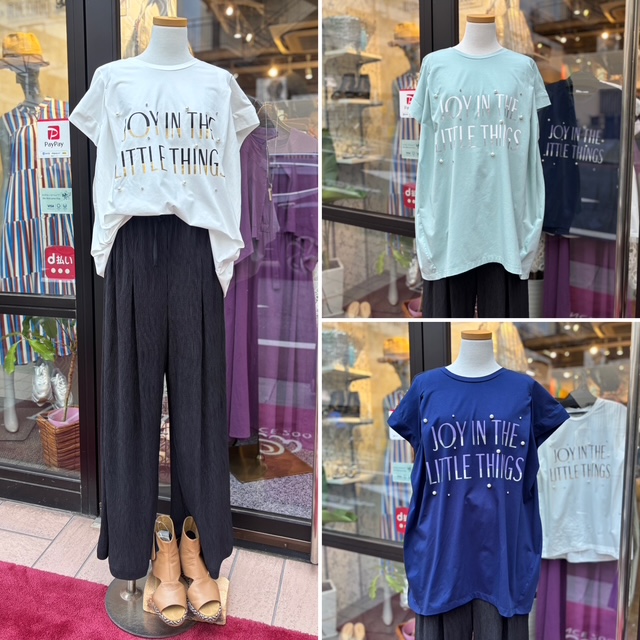 パールビジュー付き シルケット天竺使用 ラバー×箔プリ ント ロゴトップス💕 パールとビジュー、ロゴデザインでオーバーサイズでありながら上品な印象を与えてくれるカットソー✨ 体型カバーができる大き目サイズで、気になるお腹周りやヒップ、二の腕を隠してくれます✨ 人気の箔プリントも、ロゴデザインに✨ 【素材】 綿95% ポリウレタン5% 【カラー】 オフホワイト、ネイビー、サックスブルー 【サイズ】 M トップス ¥5,900+tax 2025年6月13日