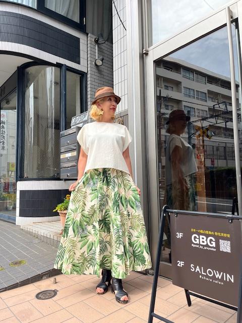 ボタニカルプリントスカート💕 上質なコットン生地のボタニカルプリントスカート💕 めちゃくちゃ軽くて、驚きの履き心地‼️ 夏のお出かけが楽しくなりそうです。 素材 コットン100% ウェスト紐調整あり 55cm〜85cm 総ゴム フリーサイズ 手洗い可 モデル身長 168cm トップス ¥9800+tax スカート ¥14000+tax 2025年6月13日