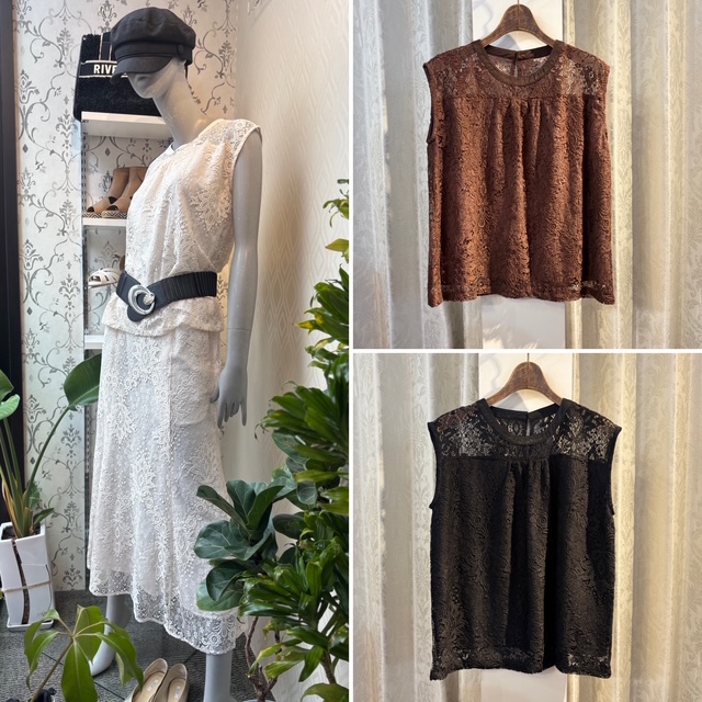 レーストップス&レーススカート💕 セットで着たら素敵なお出かけ着にも✨ もちろん別々にもいろいろ使えそうなアイテム✨ 【素材】 綿62%、ナイロン38% 裏地 ポリエステル100% 【カラー】 オフホワイト、ブラック、ブラウン 【サイズ】 フリー トップス ¥9,800+tax スカート ¥12,800+tax 2025年8月25日