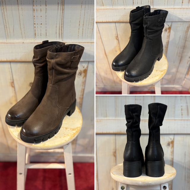 本革 ミドル丈 ブーツ💕 ヴィンテージ感のある牛ヌバックの美しい艶が足元を上品に演出✨ くしゅっとした自然なシワがポイントのミドルブーツ✨ 内側のファスナーや足あたりのいい内張など、履きやすさにもこだわったブーツです✨ 【カラー】 ブラウン、ブラック 【サイズ】 36、37、38、39 ブーツ ¥19,800+tax 2025年8月28日