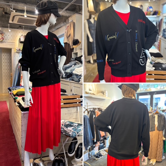 ロゴ刺繍ニットカーディガン💕 カラフルな刺繍がカジュアルな印象のカーディガン✨ ゆったりとしたシルエットで着心地も抜群✨ 柔らかなレーヨン配合素材でこれからの季節に大活躍です✨ 素材:レーヨン89% ナイロン11% カラー:ブラック サイズ:38 カーディガン ¥11,800+tax 2025年8月29日